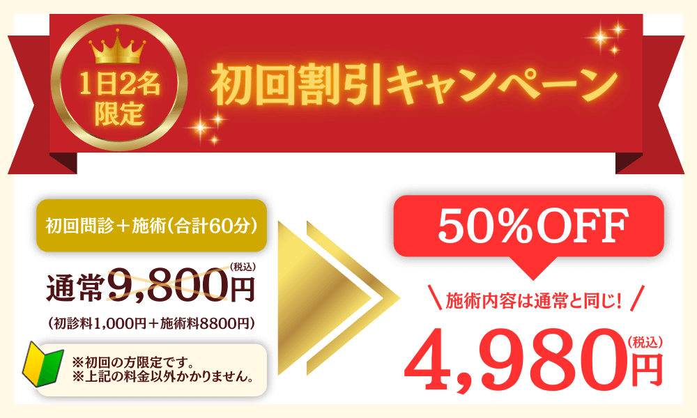 そこで当院では期間限定で初回キャンペーンをご用意しております。