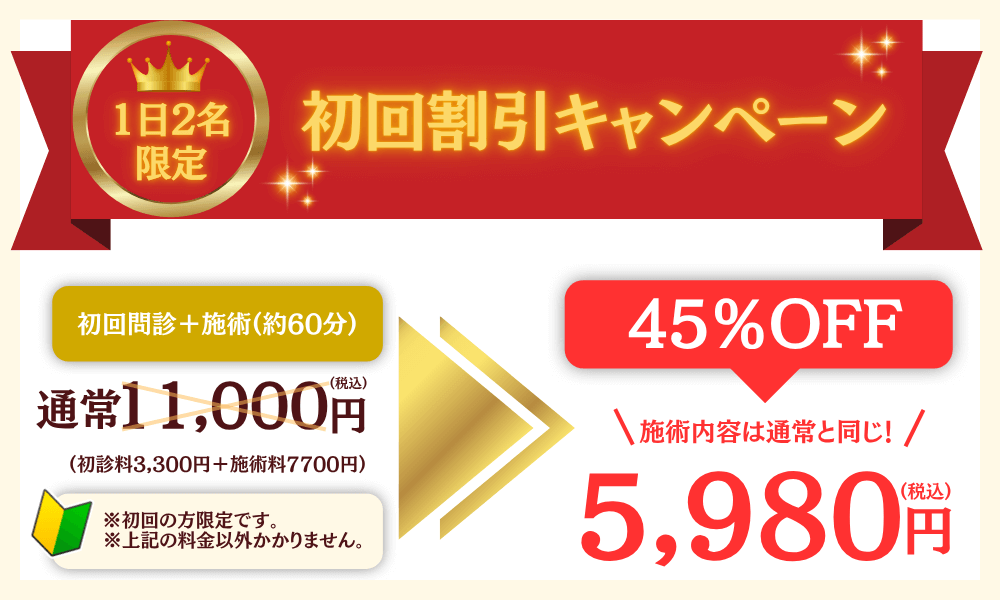 そして数名限定になりますが…当院では初回キャンペーンを行っています!